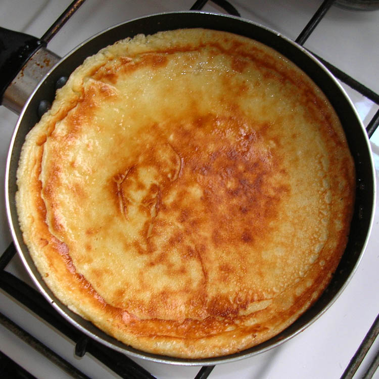 En un recipiente, echamos los huevos, la leche, la harina, la levadura, el azúcar, un chorrito de esencia de vainilla y un poco de sal. Mezclamos hasta conseguir una masa homogénea y la dejamos reposar unos minutos.