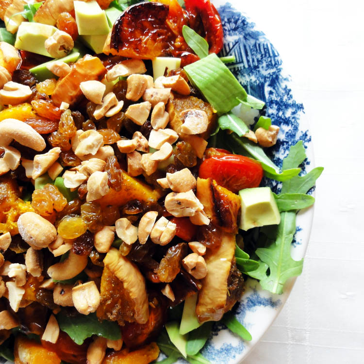 Siendo que en casa nos encanta llevar todo tipo de verduras al horno, fue imposible resistirnos a traerles esta ensalada con calabazas y tomates confitados que nos presentó Lucía (prima de Ale) un par de semanas atrás.