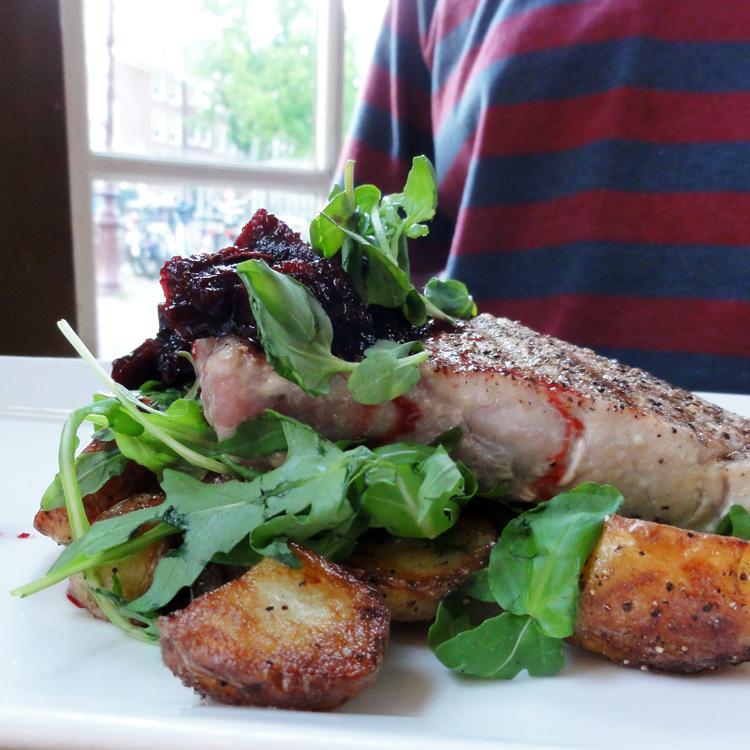Pastini es un bolichito divinamente ubicado en la tradicional esquina de Keizersgracht y Leidsegracht. Lo recomendable es reservar una mesa junto a una de las ventanas, porque todo lo que se ve hacia afuera no es más que una bellísima postal de Amsterdam. El interior es ciertamente encantador: pocas mesas, pequeñas velitas everywhere, y música suave (nos recibieron con All I Need de fondo, casi como si supieran que es una de mis canciones favoritas de Air del mundo entero!)