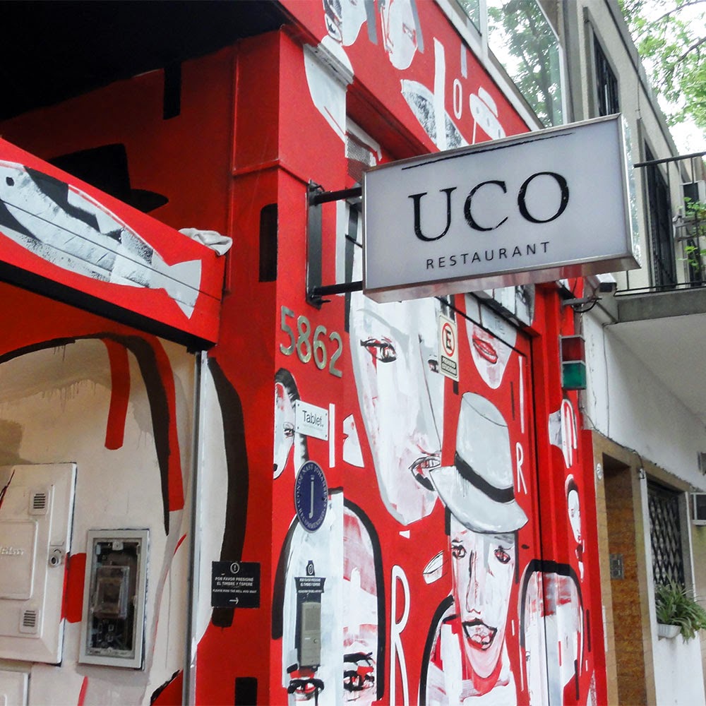Charlando con Ed Holloway, el nuevo super chef irlandés de UCO, nos contó que el nombre nace como un homenaje al Valle de UCO en Mendoza, una tierra mágica de paisajes infinitos y colmada de productos frescos y buenos vinos, por la que tanto él como Andrés Rosberg (Sommelier Ejecutivo) sienten un especial afecto. Será tal vez por su brevísima extensión que UCO resulta un nombre fuerte, evocativo y fácil de recordar, a la vez que sencillo de pronunciar tanto en español como en inglés, un dato no menor para su público extranjero. El logo, un sacacorcho estilo Samuel Henshall en el centro, y un par de cubiertos parrilleros ubicados a cada lado, es la personificación de todo lo que está bien en esta vida.