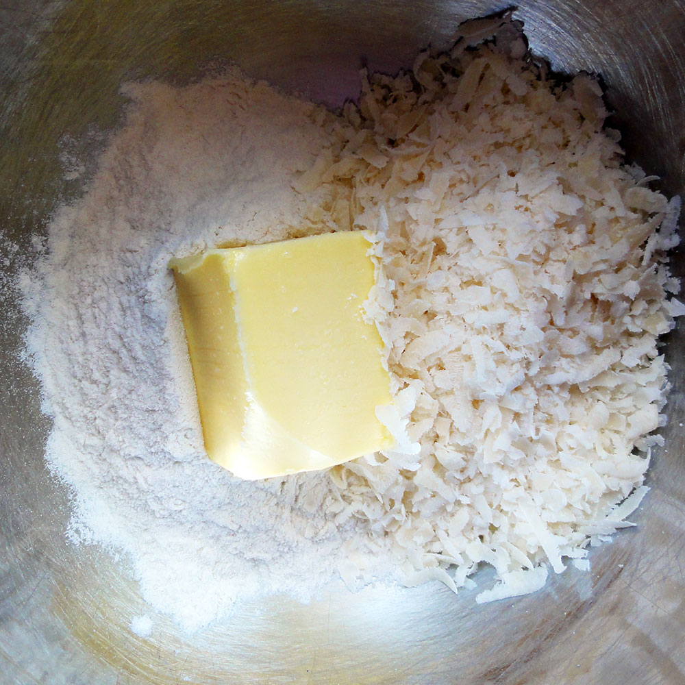 Para preparar el crumble, colocamos en un bowl la harina, el queso parmesano y la manteca a temperatura ambiente, mezclando con los dedos hasta alcanzar una textura similar a la de pequeñas bolitas de pan. Añadimos las nueces, el perejil, sal y pimienta y mezclamos un poco más, hasta homogeneizar. Cubrimos nuestro crumble con un film y refrigeramos por 30 minutos.