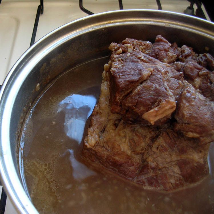 Acto seguido, nos armamos de paciencia y dejamos cocinar entre 8 y 10 horas a fuego bajo (la otra opción es cocinar por 4/5 horas a fuego alto y luego reducir el fuego por 3 o 4 horas más).